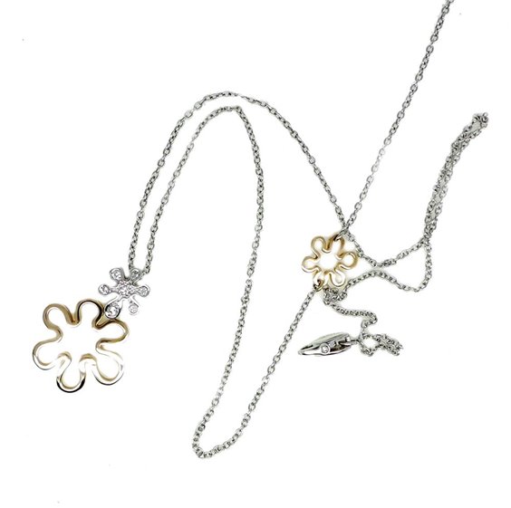 JUSTCAVALLI choker necklace in white gold and pink mesh rolò, with stylized flower pendant. Chain length 49 CM adjustable to 43 cm thanks to flower placed on the chain. Closing diamond. CM Pendant size 2.6 x 2. Diamonds Salvini CT.0.11 Each jewel is accompanied by free insurance against risks of theft and robbery for three years.